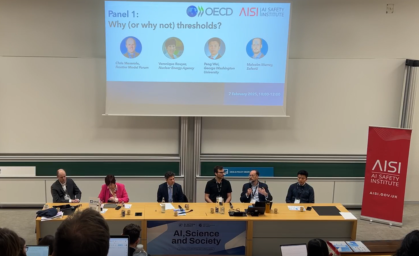 Our Research Lead Malcolm Murray spoke about risk thresholds at a roundtable organized on the Science Days, prior to the main Summit. He spoke alongside other experts like Frontier Model Forum’s CEO Chris Meserole, an EU AI Office representative and a nuclear energy expert. At this event, he emphasized the importance of setting risk thresholds and striving to ground them in concrete risk estimates, rather than relying only on indirect proxies. This is a core motivation of our recent work attempting to turn empirical measurements into risk estimates (Murray et al. 2025).