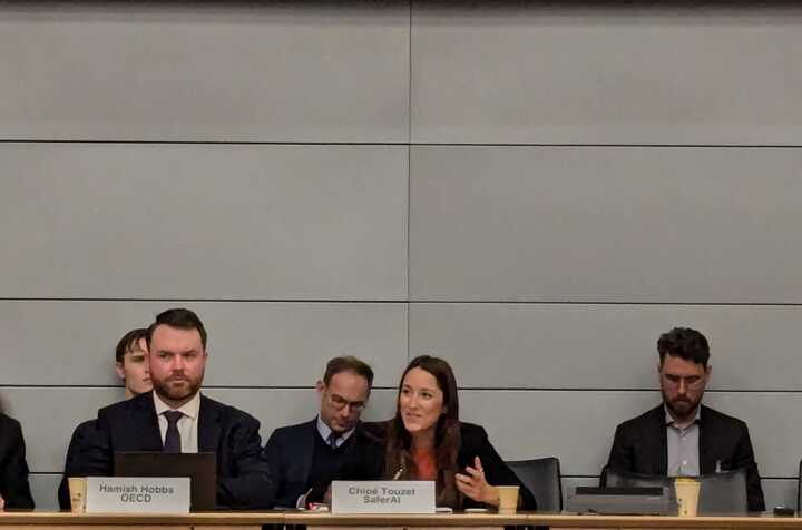 Our Policy Lead, Chloé Touzet, represented civil society at this event, speaking alongside experts from the Frontier Model Forum, Google DeepMind, METR, and AWS. She emphasized the importance of transparency for governments to be aware of the frontier and be able to monitor risks as those increase.